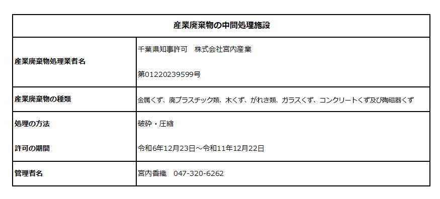 各種許可:関東圏の産業廃棄物収集運搬業、産業廃棄物処分業